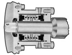 | This water-cooled balanced double seal can be pressurized to contain coolants or sealants, which can be piped directly to drain. This seal is often used in slurries, heavy-duty vacuum applications (up to 28" Hg), tacky products or products at temperatures up to 212°F. |